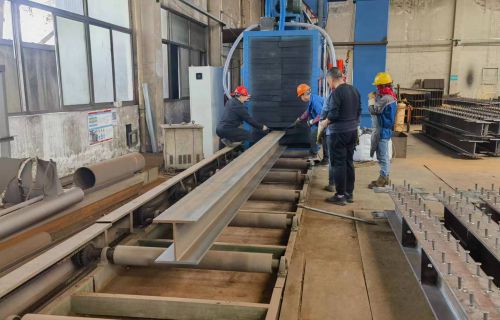 鋼結(jié)構(gòu)拋丸機工作原理:???? 鋼結(jié)構(gòu)拋丸機是將工件吊放在輸送輥道上,輥道輸送系統(tǒng)將工件向前輸送,當(dāng)工件...